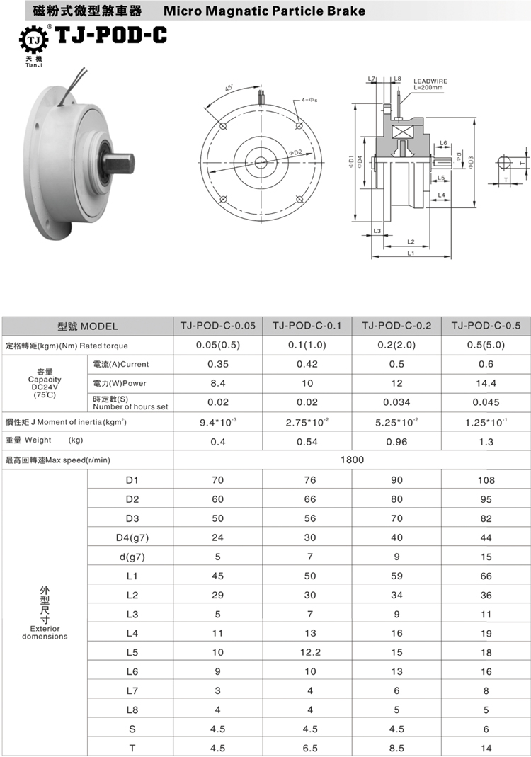 小型磁粉制動器(微型磁粉制動器)選型尺寸參數: