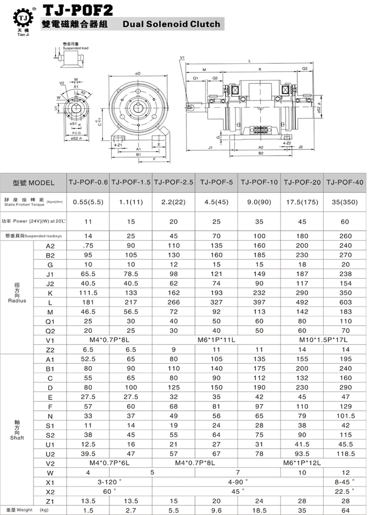 雙電磁離合器帶皮帶輪,雙電磁離合器POF1型